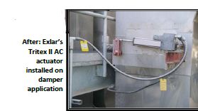 n order to improve damper control, engineers are replacing their pneumatic actuator solutions with more precise and reliable Exlar electric actuators. With Exlar’s Tritex II AC actuators, controls of the dampers is instantaneous, with small incremental moves possible for precise positioning and ultimate control.