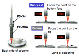If we try to focus on the tip when the tip is not present, the beam spot will hit the land (end side in copper pattern) or soldering part and reflect more light. Purposely shifting the focus of the spot to achieve a stable detection.