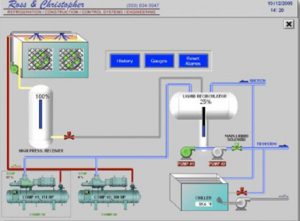 Ross & Christopher is a design/build construction firms with broad experience in the design and construction of refrigerated food processing, packaging, and storage facilities. Automated control systems are needed by the operators at refrigeration plants that store the country’s major supplies of beef, tree fruit, grapes, dairy products and other perishable foods. Operator displays need to be intuitive and easy to understand without sacrificing functionality.