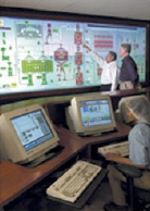 A single PLC on the line is used to control all phases of operation. The PLC reads data from an online scale, adjusts the revolution rate on a feed auger to control the amount of product dispensed, adjusts the speed of a filler unit and monitors the vibrator that settles product in the can. When a production run is finished, the PLC sets a Boolean flag indicating that the data is ready. The PC running the InduSoft interface detects the flag, picks up the production data and publishes it as a report to the database.