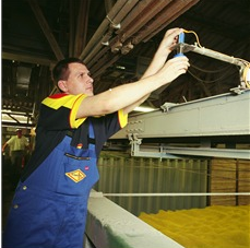 Ultrasonic sensors measure the level in silos and control automatic filling with grain.