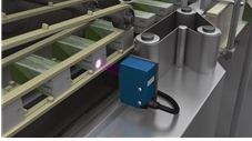 Luminescence sensors detect marks that are only visible under UV light. This is due to fluorescent substances contained in the mark, which convert the UV light into visible light. The reflected light beam is received by the luminescence sensor and evaluated.