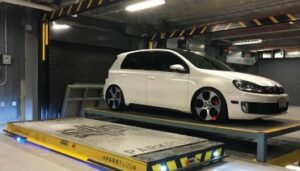 PARKPLUS is a North America provider of automated and mechanical high density parking solutions. They developed an advanced parking system consisting of free-roaming, battery operated, omni-directional AGV units that utilize traffic management software, markers, vision systems and lasers for self-guidance to manage the automated storage and retrieval of vehicles on trays. The system can be installed in new or existing multi-level parking structures. These structures typically have low ceilings to maximize vertical space, which presented a considerable challenge when designing the AGV.